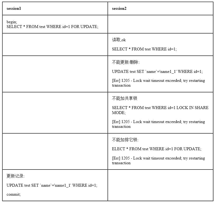 对同一行数据,获得该锁的事务可读可写,未获得锁的事务不可读也不可写.