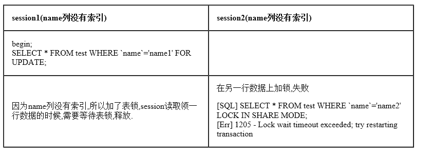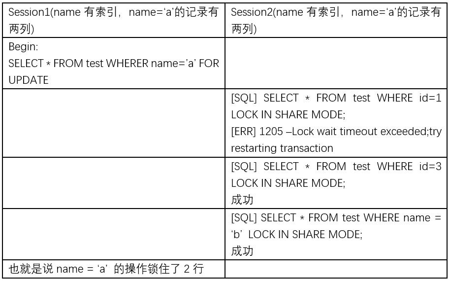 InnoDB只有在访问行的时候才会对其加锁,而索引能减少InnoDB访问的行数,从而减少锁的数量。但这只有当InnoDB在存储引擎层能够过滤掉所有不需要的行时才有效。如果索引无法过滤掉无效的行,那么在InnoDB检索到数据并返回给服务器层以后,MySQL服务器才能应用WHERE子句。这时已经无法避免锁定行了:InnoDB已经锁定了这些行,到适当的时候才释放。(在MySQL 5.1和更新的版本中,InnoDB可以在服务器端过滤掉行后就释放锁,但在早期的版本中只有在事务提交后才能释放锁。)