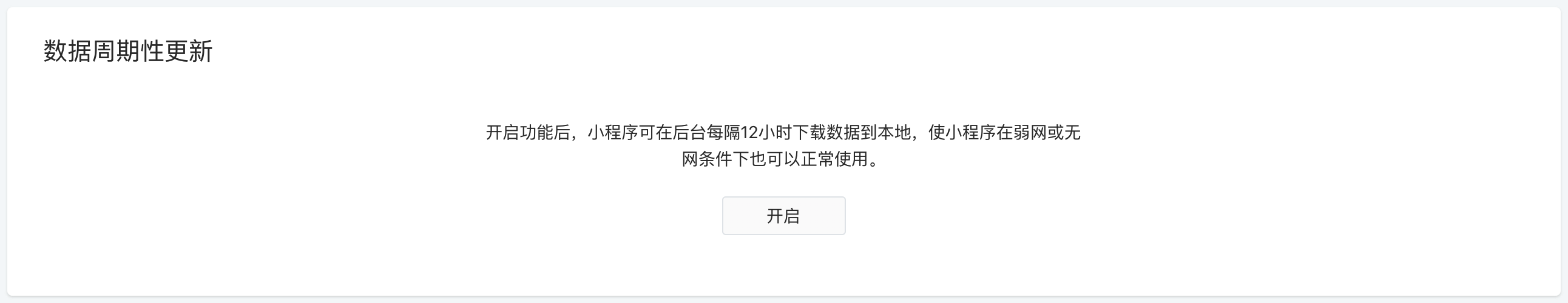 周期性更新能够在用户未打开小程序的情况下,也能从服务器提前拉取数据,当用户打开小程序时可以更快地渲染页面,减少用户等待时间,增强在弱网条件下的可用性。